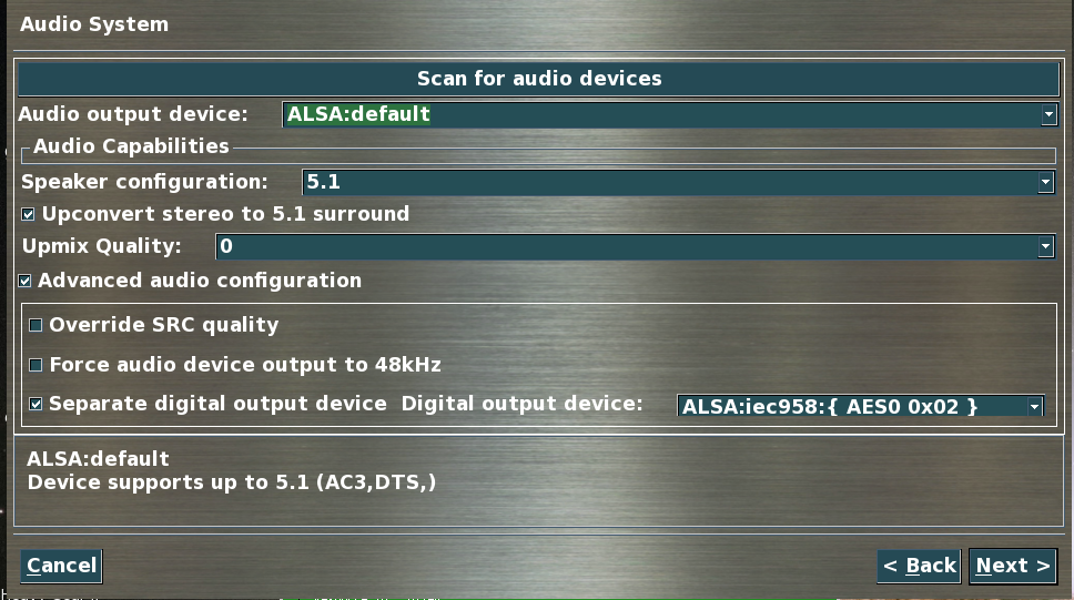 >> Could you post a screen capture with ALSA:default selected?